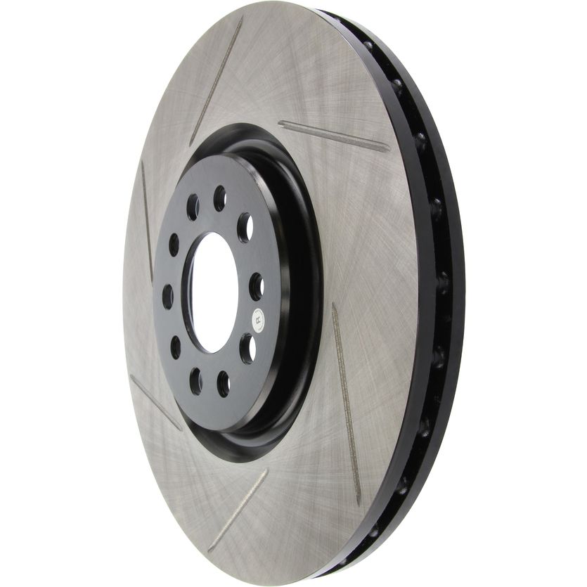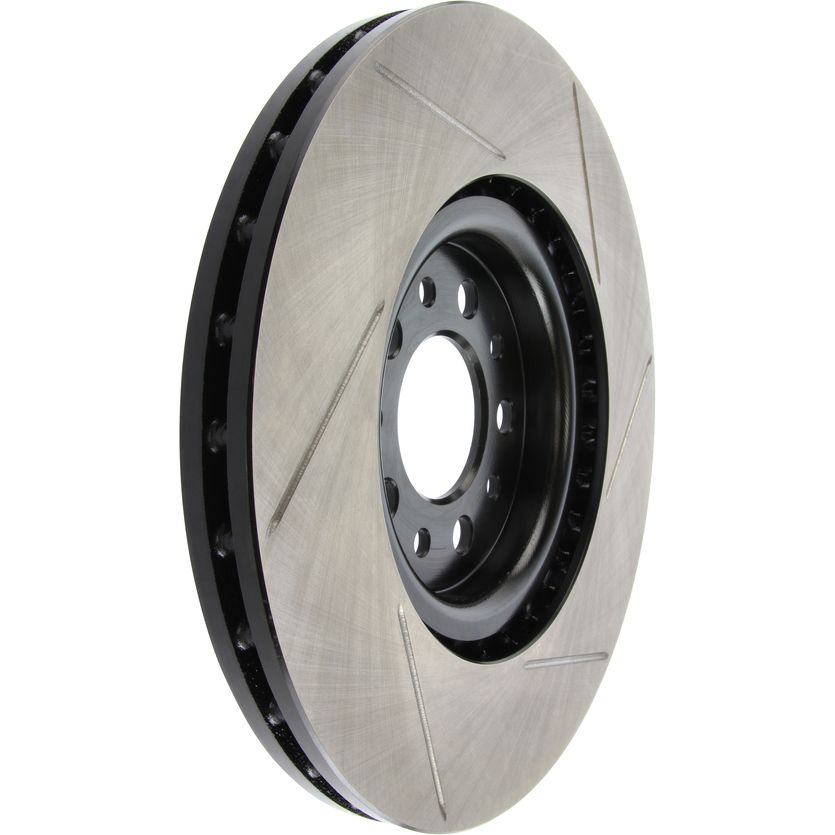 126.58014SR – StopTech Sport Slotted Brake Rotor; Front Right StopTech Slotted Sport Rotors are 1-piece direct replacement brake discs for factory brake systems and stock calipers that look great behind your wheels – and offer significantly improved braking performance. The unique slotting aids with heat and brake dust dispersal; prevents glazing of the pads; adds bite and improves wet and dry braking performance. Built to last; the black e-coating provides protection from corrosion and the high carbon metallurgy (in most applications) offers quieter operation; better crack resistance and increased performance. Premium e-coated rotor with advanced metallurgy that greatly reduces pad squeal. Especially effective with higher friction; European style brake pad compounds. Slotted for increased bite; improved looks and better performance