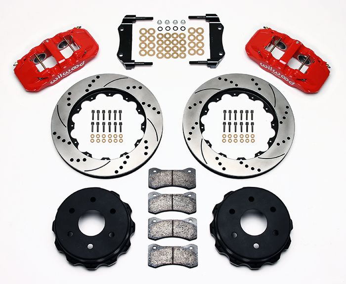 - 140-9838-DR – Wilwood Big Brake Kit – Rear – 362x32mm Curved Slotted & Cross Drilled – AERO4 Red The Wilwood AERO4 Big Brake rear axle kits replace the factory disc brakes and use the OE parking brake assembly as a compliment to front big brake upgrades on late model trucks and SUV’s.