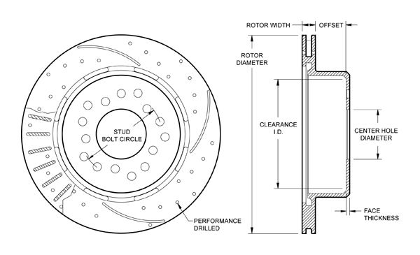 160-11375-BK – Wilwood SRP Rotor & Hat – 280x20mm Curved Slotted & Cross Drilled Left SRP rotors provide high performance, longevity and an excellent balance of efficient cooling and lower rotating mass for a wide range of applications, such as high performance, sport driving & competition use. Wilwood’s modern manufacturing capabilities allow for quality cast rotors from premium grade, long grain carbon iron for long wear, high thermal stability, and resistance to distortion at an affordable price. These rotors also offer smoother operation thanks to precision turned faces with less than .001″ variation in parallelism, flatness, or run-out.