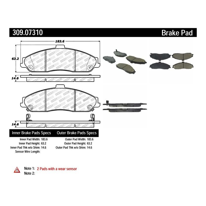 | Outer Pad Width (mm) | 183, 60 |