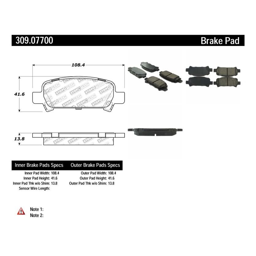| Outer Pad Width (mm) | 108, 40 |