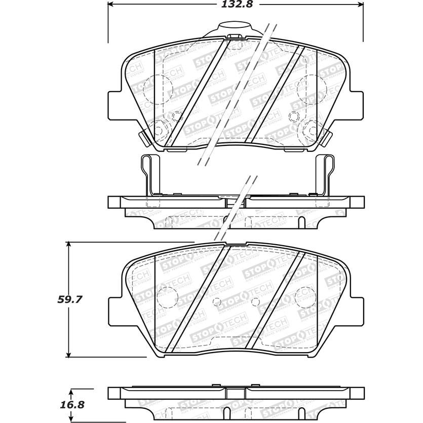 308.14320 – StopTech Street Brake Pads with Shims and Hardware Superior Braking Performance for street-only vehicles. Offers good bite; excellent dust and noise abatement; plus good rotor and pad life. Lab-Tested; OE-Style Design and Features. Rotor-Friendly; Low-Dust for Cleaner Wheels. Dyno-Proven Shims for Quiet Operation. Positive Molded for Consistent Performance. Scorched to Ease Bed-In. Premium Hardware for Precision OE Fitment.
