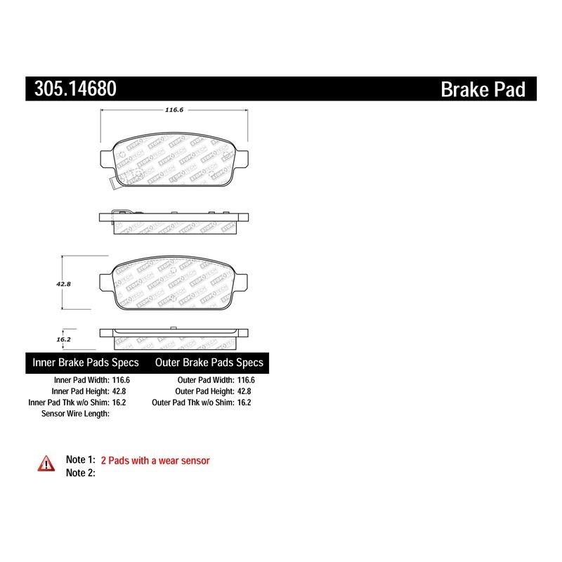 | Outer Pad Width (mm) | 116, 60 |