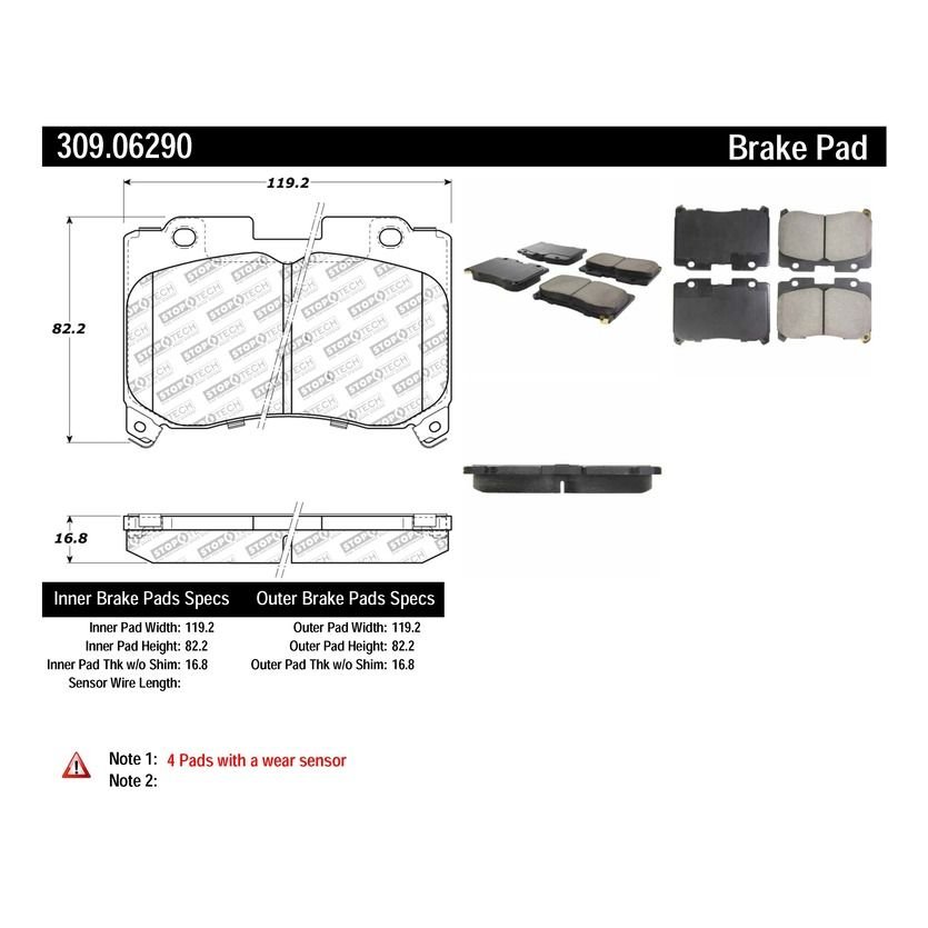 - 309.06290 – StopTech Sport Brake Pads with Shims and Hardware Aggressive friction for frequent high performance street driving and occasional track use.