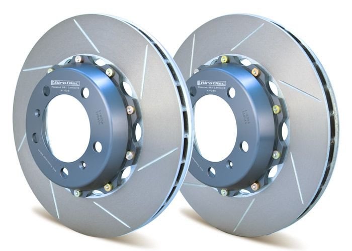 A1-035SL – GiroDisc 2-Piece Rotor Assembly; Left The GiroDisc 2-piece rotor system is a direct replacement for the OE rotor, no modifications are necessary. The disc will bolt directly to the car and work with OE calipers perfectly. Once the Girodisc system is in place, simply replace the cast iron rotor ring when needed. The average Girodisc 2-piece rotor is approx 2kg lighter per rotor then the stock units. This reduction in rotational and unsprung weight allows for quicker acceleration and suspension response.