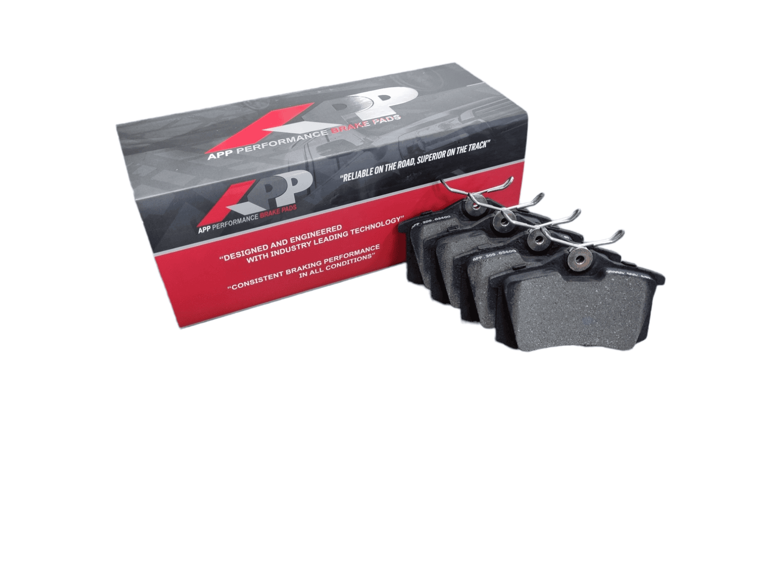 - All APP brake pads are post cured and scorched to minimize the break-in period required to ensure stable friction performance and increased stopping power straight out of the box.