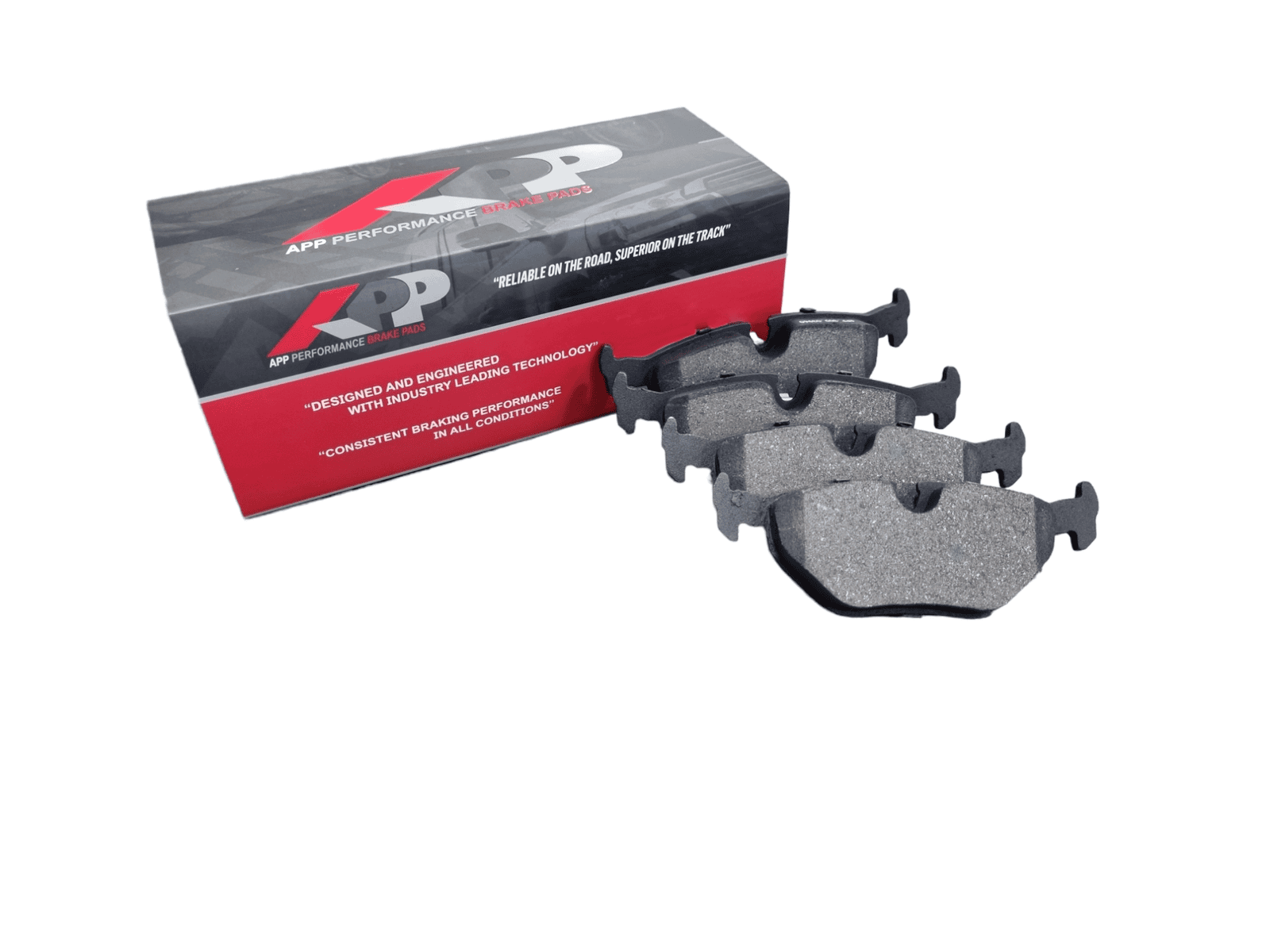 - All APP brake pads are post cured and scorched to minimize the break-in period required to ensure stable friction performance and increased stopping power straight out of the box.