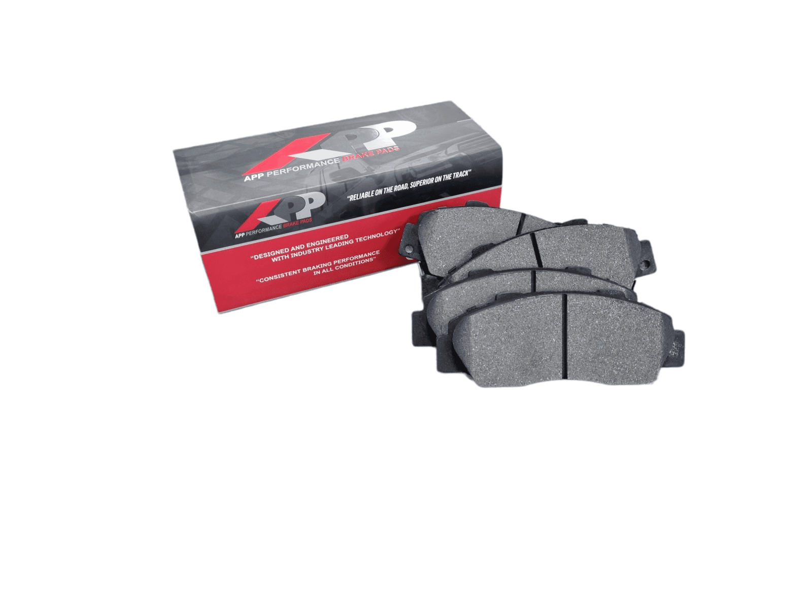 - All APP brake pads are post cured and scorched to minimize the break-in period required to ensure stable friction performance and increased stopping power straight out of the box.