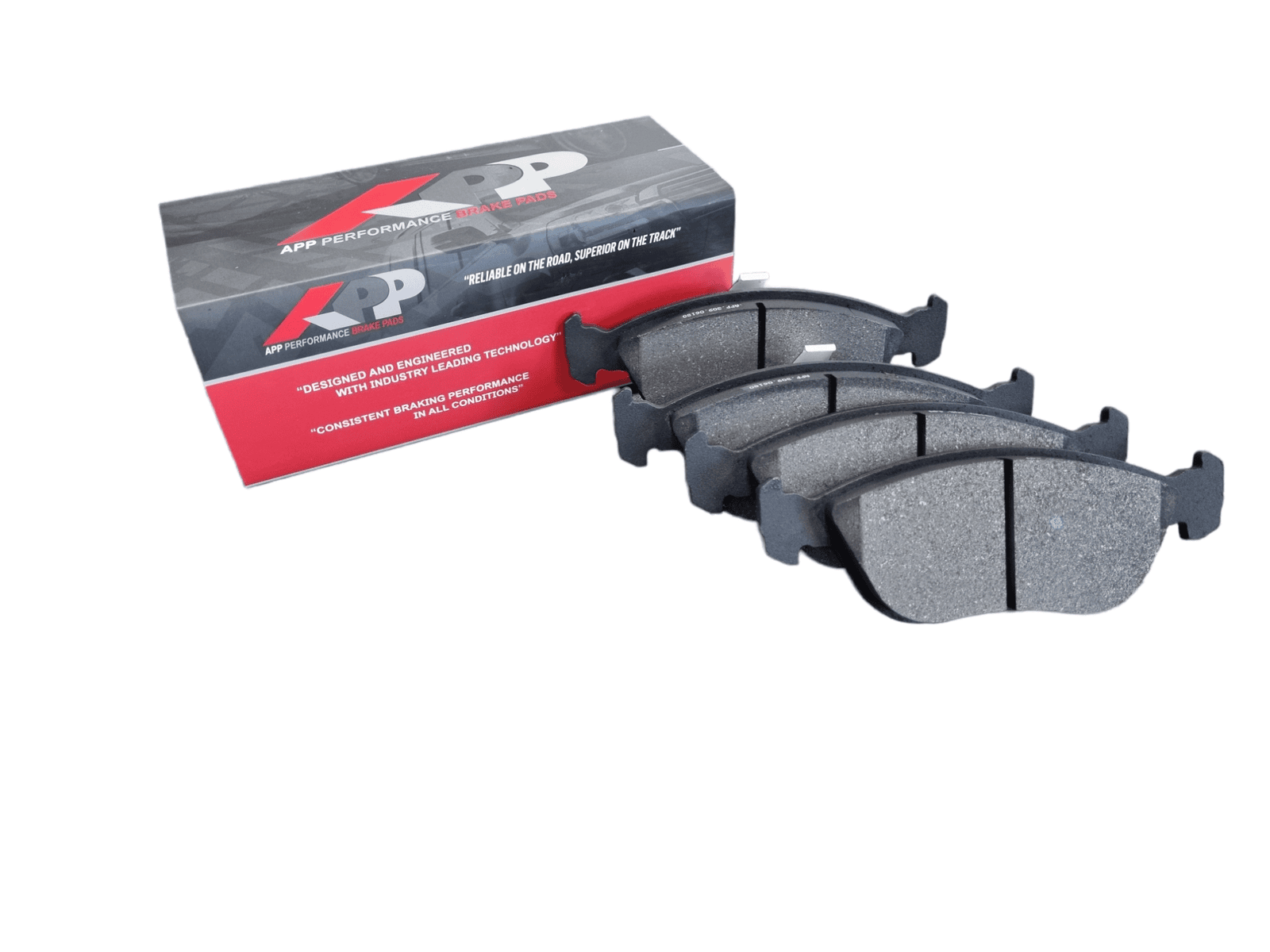 - All APP brake pads are post cured and scorched to minimize the break-in period required to ensure stable friction performance and increased stopping power straight out of the box.