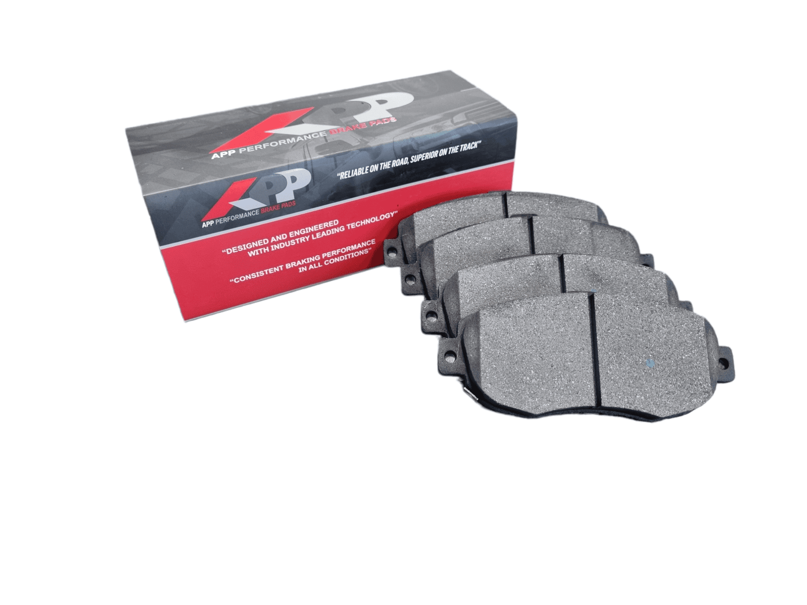 - All APP brake pads are post cured and scorched to minimize the break-in period required to ensure stable friction performance and increased stopping power straight out of the box.