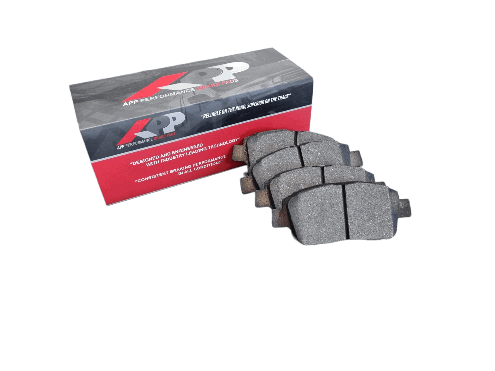 - All APP brake pads are post cured and scorched to minimize the break-in period required to ensure stable friction performance and increased stopping power straight out of the box.