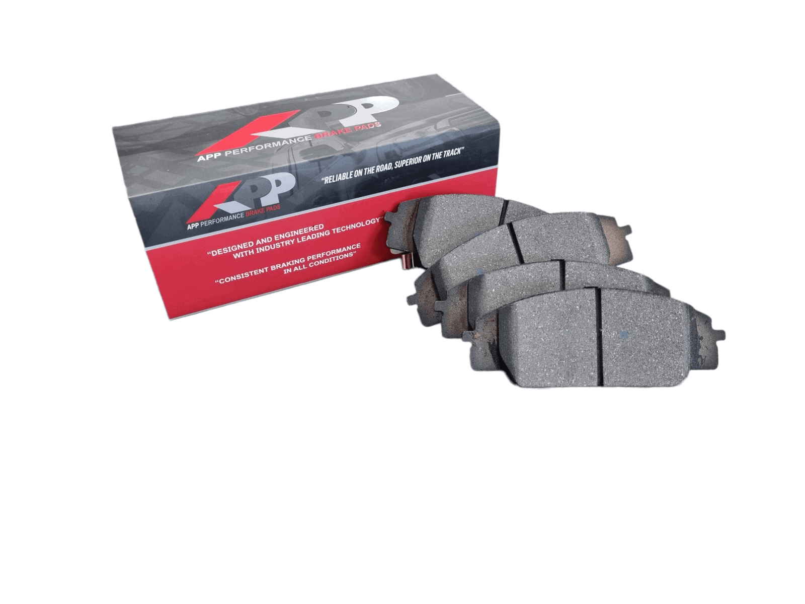 - All APP brake pads are post cured and scorched to minimize the break-in period required to ensure stable friction performance and increased stopping power straight out of the box.
