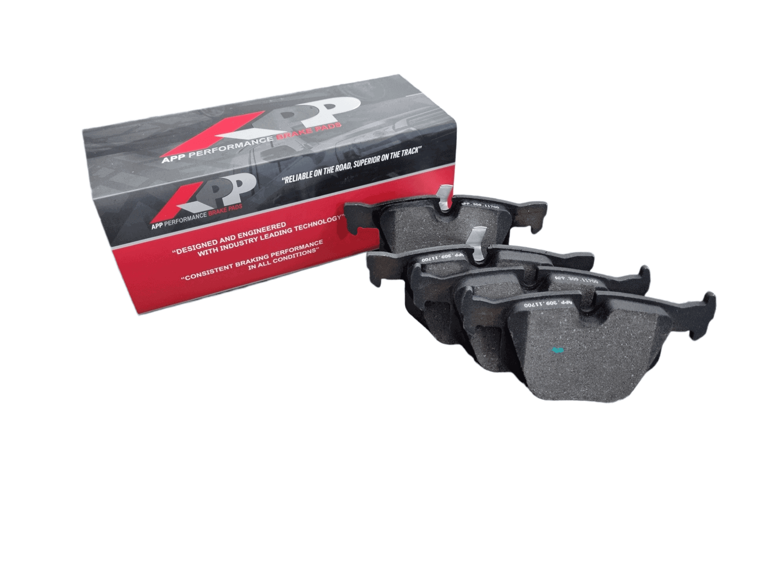 - All APP brake pads are post cured and scorched to minimize the break-in period required to ensure stable friction performance and increased stopping power straight out of the box.