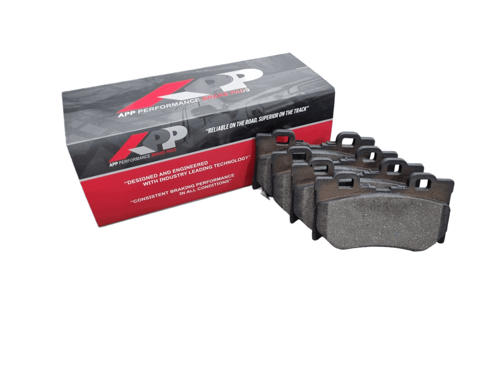 - All APP brake pads are post cured and scorched to minimize the break-in period required to ensure stable friction performance and increased stopping power straight out of the box.