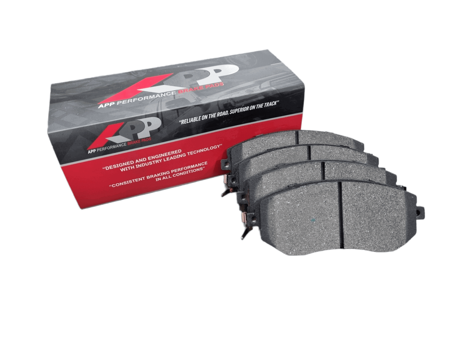 - All APP brake pads are post cured and scorched to minimize the break-in period required to ensure stable friction performance and increased stopping power straight out of the box.