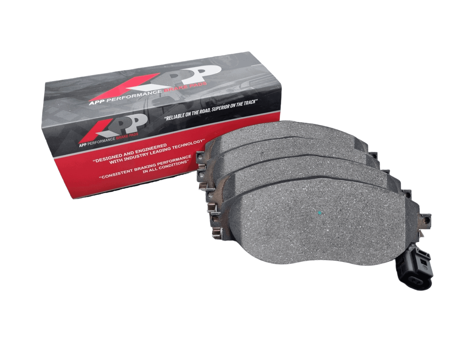 - All APP brake pads are post cured and scorched to minimize the break-in period required to ensure stable friction performance and increased stopping power straight out of the box.