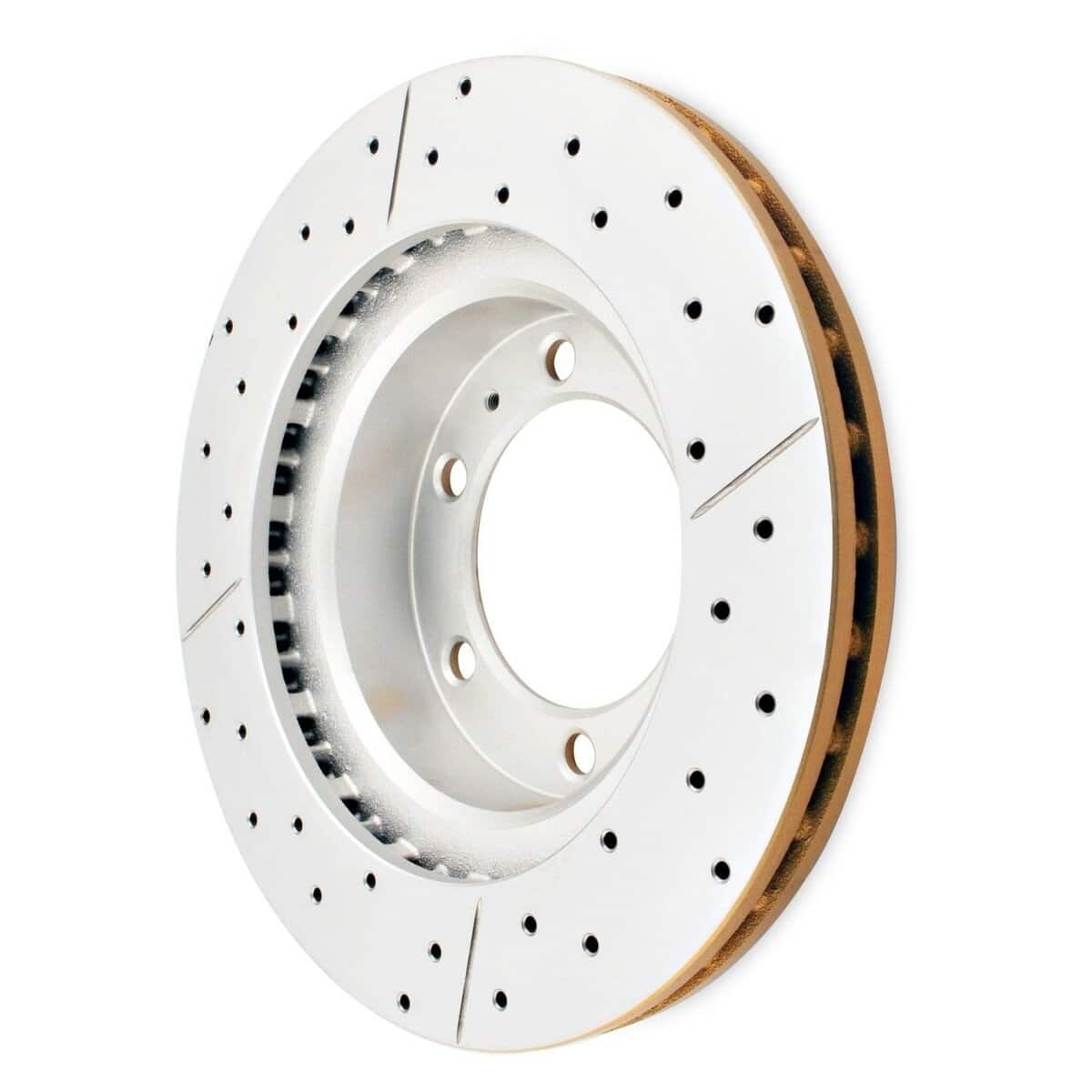 - The distinctive cross-drilled and slotted design in the Street Series X Gold enhances brake performance by increasing the number of exit points, facilitating the escape of brake pad friction dust and gases through both the cross-drilled holes and slots.