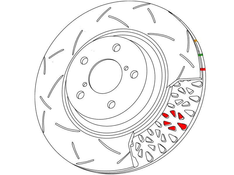 - The implementation of the distinctive cross-drilled and slotted design enhances the number of exit points, facilitating the efficient release of brake pad friction dust and gases through both the cross-drilled holes and slots, thereby improving braking performance.