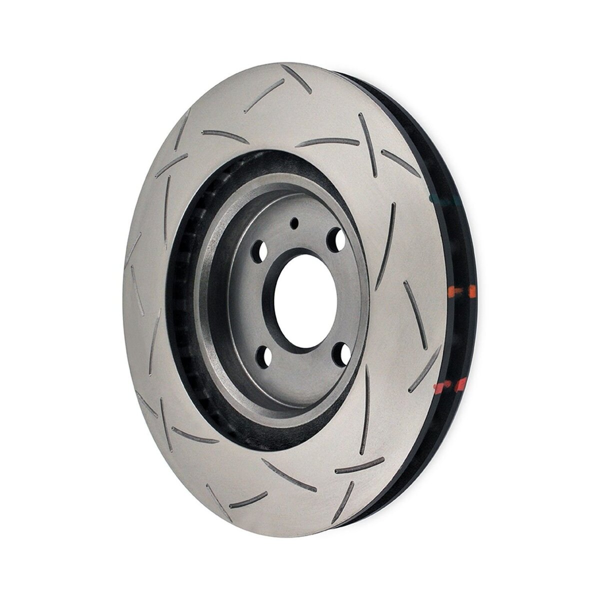 DBA42355S – 4000 Series T3 Brake Rotor; Front & Rear The 4000 Series T3 stands as the pinnacle in direct replacement single-piece performance brake rotors, encompassing all the metallurgy advantages of the 4000 Series with the addition of DBA’s renowned T3 bi-directional slot design. Evolved from the T2 slot foundation, the T3 slot design introduces precise CNC machined tri-symmetrical slots, resulting in a notably quieter, more responsive, and smoother brake pedal feel. The T3 slot enhances the braking experience by increasing the number of exit points for brake pad friction dust and gases, ensuring a consistent and effective performance with every brake stop. The majority of DBA’s 4000 Series Brake Rotors showcase the innovative Kangaroo Paw ventilation system. This system integrates a pattern of 144 diamond and teardrop-shaped pillars, delivering an outstanding 30% increase in surface area and a remarkable 20% enhancement in cooling efficiency when compared to conventional straight vane designs. Additionally, all 4000 Series Brake Rotors are equipped with Thermographic heat paint markings. These markings undergo colour changes at specific temperature thresholds, providing a valuable visual aid for monitoring braking temperatures and rotor fatigue. Ideal for high-performance applications, we highly recommend the 4000 Series T3 brake rotors for drivers seeking the utmost in braking excellence. Elevate your driving experience with the superior performance and innovation of the DBA 4000 Series T3 brake rotors.