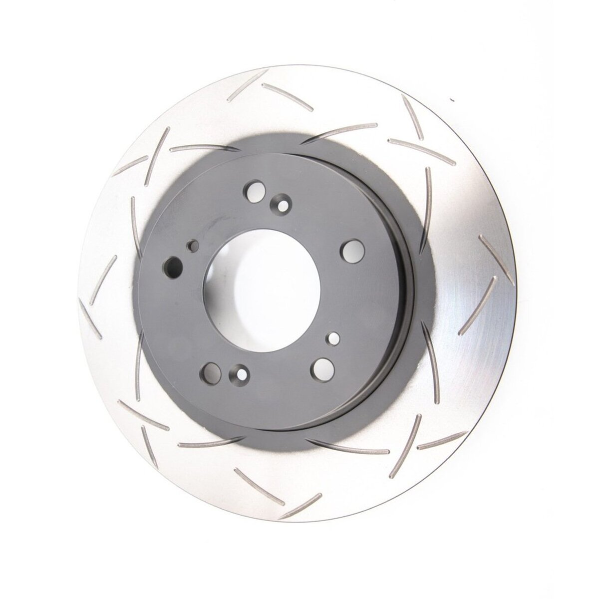 DBA4478S – 4000 Series T3 Brake Rotor; Front The 4000 Series T3 stands as the pinnacle in direct replacement single-piece performance brake rotors, encompassing all the metallurgy advantages of the 4000 Series with the addition of DBA’s renowned T3 bi-directional slot design. Evolved from the T2 slot foundation, the T3 slot design introduces precise CNC machined tri-symmetrical slots, resulting in a notably quieter, more responsive, and smoother brake pedal feel. The T3 slot enhances the braking experience by increasing the number of exit points for brake pad friction dust and gases, ensuring a consistent and effective performance with every brake stop. The majority of DBA’s 4000 Series Brake Rotors showcase the innovative Kangaroo Paw ventilation system. This system integrates a pattern of 144 diamond and teardrop-shaped pillars, delivering an outstanding 30% increase in surface area and a remarkable 20% enhancement in cooling efficiency when compared to conventional straight vane designs. Additionally, all 4000 Series Brake Rotors are equipped with Thermographic heat paint markings. These markings undergo colour changes at specific temperature thresholds, providing a valuable visual aid for monitoring braking temperatures and rotor fatigue. Ideal for high-performance applications, we highly recommend the 4000 Series T3 brake rotors for drivers seeking the utmost in braking excellence. Elevate your driving experience with the superior performance and innovation of the DBA 4000 Series T3 brake rotors.