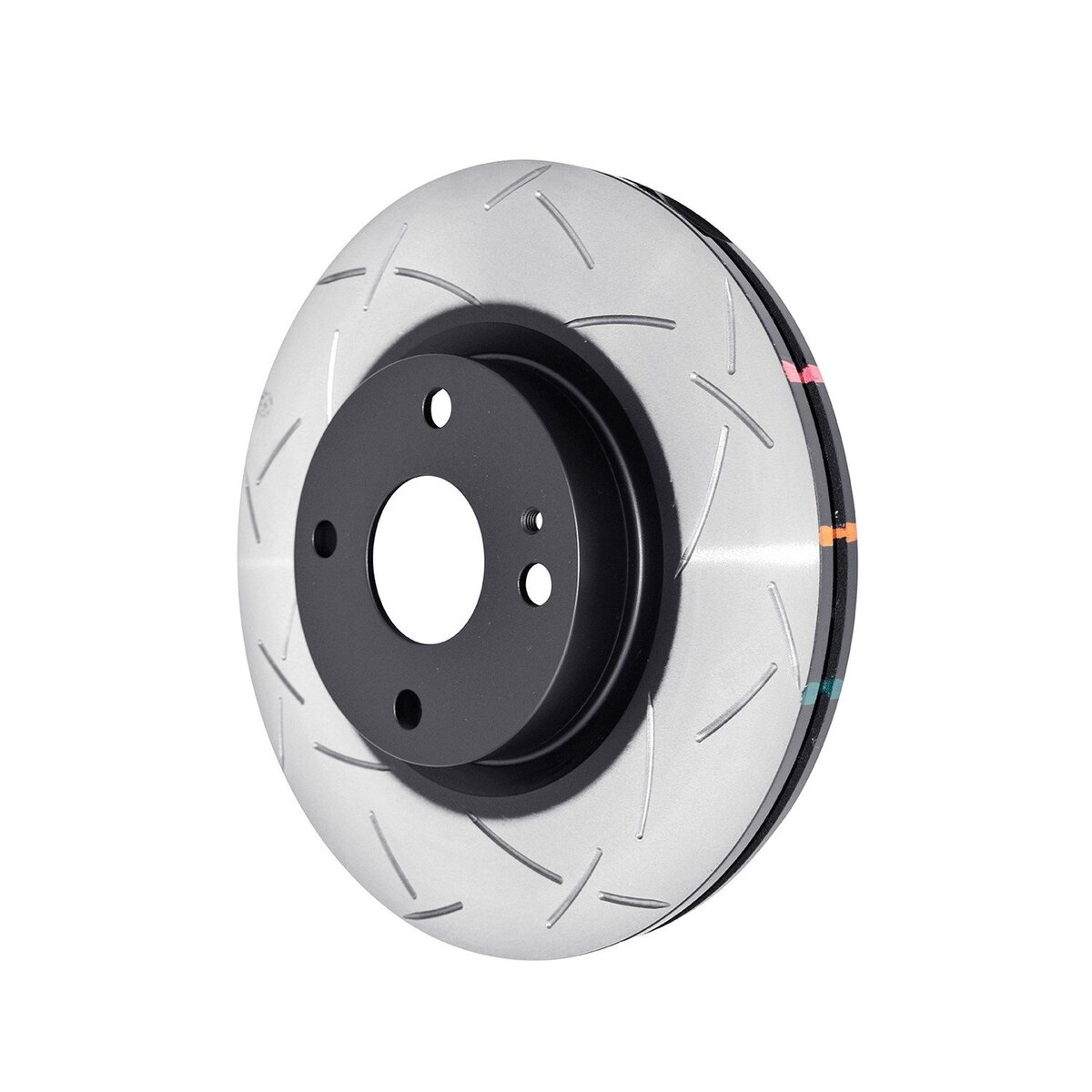 DBA4545S – 4000 Series T3 Brake Rotor; Front The 4000 Series T3 stands as the pinnacle in direct replacement single-piece performance brake rotors, encompassing all the metallurgy advantages of the 4000 Series with the addition of DBA’s renowned T3 bi-directional slot design. Evolved from the T2 slot foundation, the T3 slot design introduces precise CNC machined tri-symmetrical slots, resulting in a notably quieter, more responsive, and smoother brake pedal feel. The T3 slot enhances the braking experience by increasing the number of exit points for brake pad friction dust and gases, ensuring a consistent and effective performance with every brake stop. The majority of DBA’s 4000 Series Brake Rotors showcase the innovative Kangaroo Paw ventilation system. This system integrates a pattern of 144 diamond and teardrop-shaped pillars, delivering an outstanding 30% increase in surface area and a remarkable 20% enhancement in cooling efficiency when compared to conventional straight vane designs. Additionally, all 4000 Series Brake Rotors are equipped with Thermographic heat paint markings. These markings undergo colour changes at specific temperature thresholds, providing a valuable visual aid for monitoring braking temperatures and rotor fatigue. Ideal for high-performance applications, we highly recommend the 4000 Series T3 brake rotors for drivers seeking the utmost in braking excellence. Elevate your driving experience with the superior performance and innovation of the DBA 4000 Series T3 brake rotors.