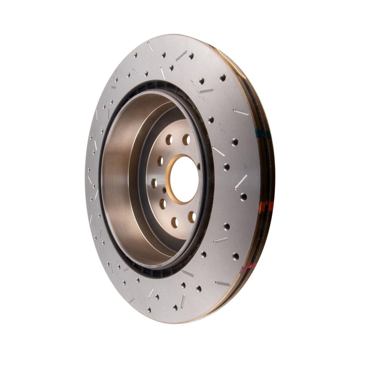 - The implementation of the distinctive cross-drilled and slotted design enhances the number of exit points, facilitating the efficient release of brake pad friction dust and gases through both the cross-drilled holes and slots, thereby improving braking performance.