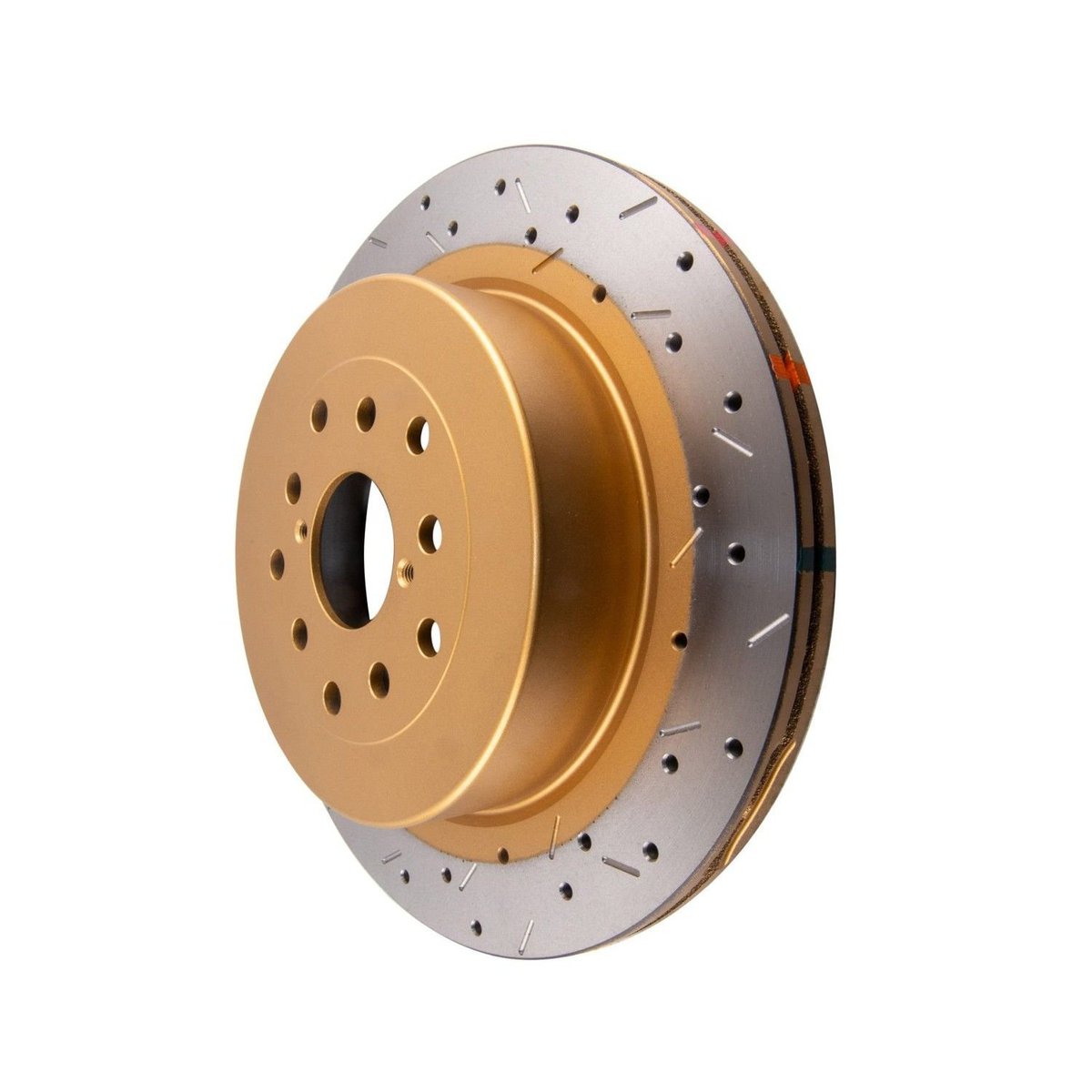 DBA4655XS-10 – 4000 Series XS Gold Brake Rotor; Rear The 4000 Series XS Gold brake rotors provide all the benefits of 4000 Series, with a premium non directional cross drilled and slotted design, including an appealing gold coated finish on the rotor hub. The implementation of the distinctive cross-drilled and slotted design enhances the number of exit points, facilitating the efficient release of brake pad friction dust and gases through both the cross-drilled holes and slots, thereby improving braking performance. Most of DBA’s 4000 Series Brake Rotors feature the revolutionary Kangaroo Paw ventilation system. This system incorporates a pattern of 144 diamond and teardrop-shaped pillars, resulting in an impressive 30% increase in surface area and a notable 20% improvement in cooling efficiency compared to traditional straight vane designs. Moreover, all 4000 Series Brake Rotors come equipped with Thermographic heat paint markings. These markings change color at specific temperature thresholds, offering a useful visual indicator for monitoring braking temperatures and assessing rotor fatigue. Offering comparable performance advantages to the T3 slot, the XS Gold presents a favored alternative, particularly well-received in show car applications. However, it’s important to note that drilled rotor configurations are not advisable for rigorous off-road or track day usage.