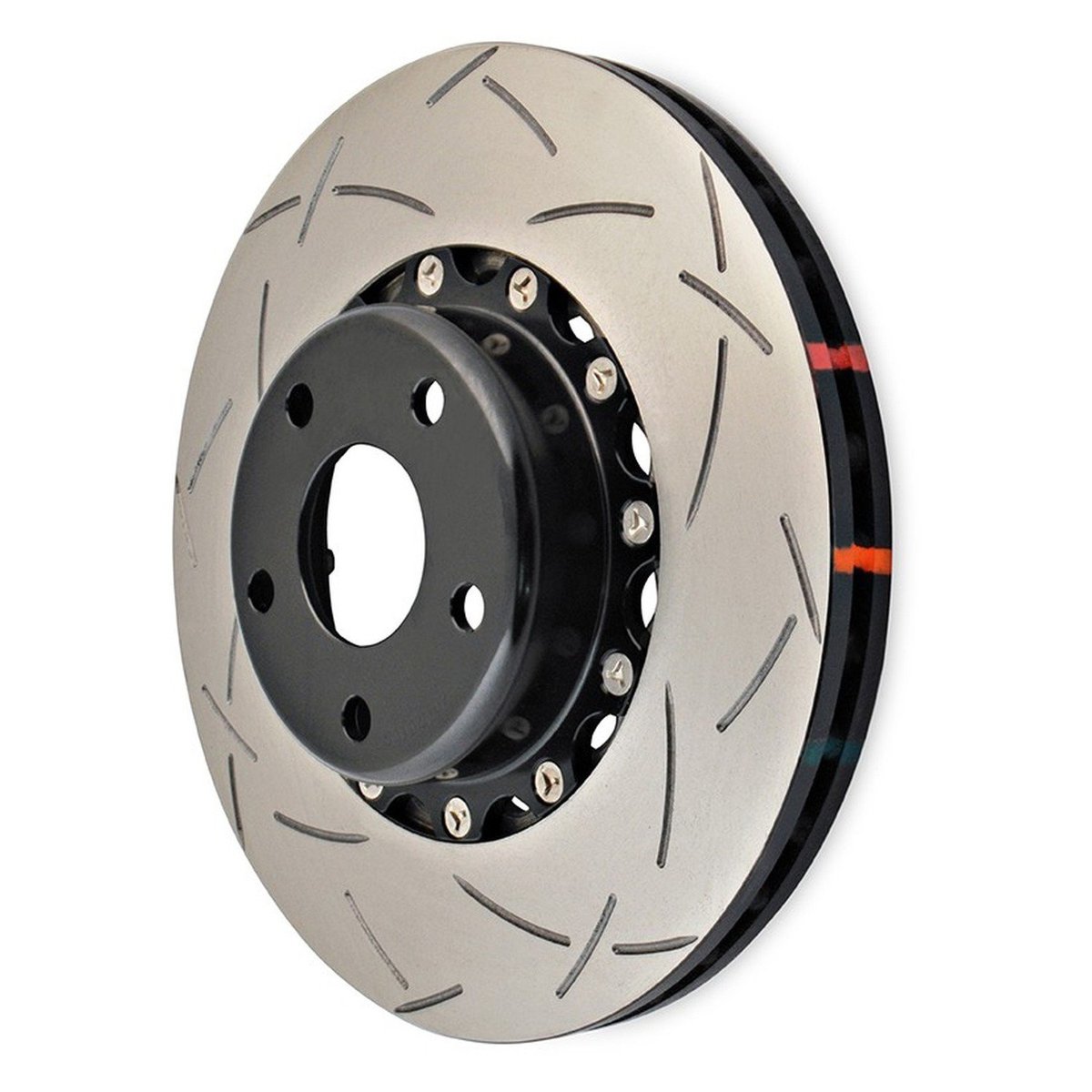 DBA5010BLKS – 5000 Series T3 Brake Rotor; Front Level up your driving experience with DBA’s 5000 Series T3 Brake Rotors, featuring the revolutionary T3 bi-slotted design. Unleashing all the cutting-edge performance technology that DBA has to offer, these two-piece direct replacement brake rotors boast CBN machine-turned finishes and are crafted from high carbon alloys. With DBA’s Kangaroo Paw ventilation system, enjoy a remarkable 30% increase in surface area and a 20% improvement in cooling efficiency compared to conventional straight vane designs. What sets these rotors apart is the T3 bi-slotted design, ensuring a smoother, more responsive, and notably silent braking experience. Not stopping there, these brake rotors come equipped with Thermographic heat paint markings, transitioning in color at specific temperature thresholds. This provides a valuable visual cue for monitoring braking temperatures and assessing rotor fatigue, adding an extra layer of precision to your braking system. The incorporation of aerospace-grade aluminum hats isn’t just about style; it reduces unsprung weight and facilitates uniform radial disc expansion within the cast iron rings. Moreover, it acts as a heat barrier, mitigating heat transfer from the disc to the hub through the aluminum hats. DBA’s commitment to optimal performance is evident in the meticulous use of top-tier materials. High carbon cast iron rings are seamlessly integrated with Aluma-lite center hats/bells, securely fastened together using National Aerospace Standards (NAS) bolts and crimp nuts. Choose from complete assemblies for initial replacements (hats and friction rings bolted together) or opt for replacement hats and flat disc rotors. This flexibility allows drivers to reuse their DBA 5000 Series hats with DBA replacement rings, ensuring both convenience and cost-effectiveness. For drivers seeking the ultimate brake rotor upgrade on their high-performance cars, the 5000 T3 Series rotors stand as the go-to choice.