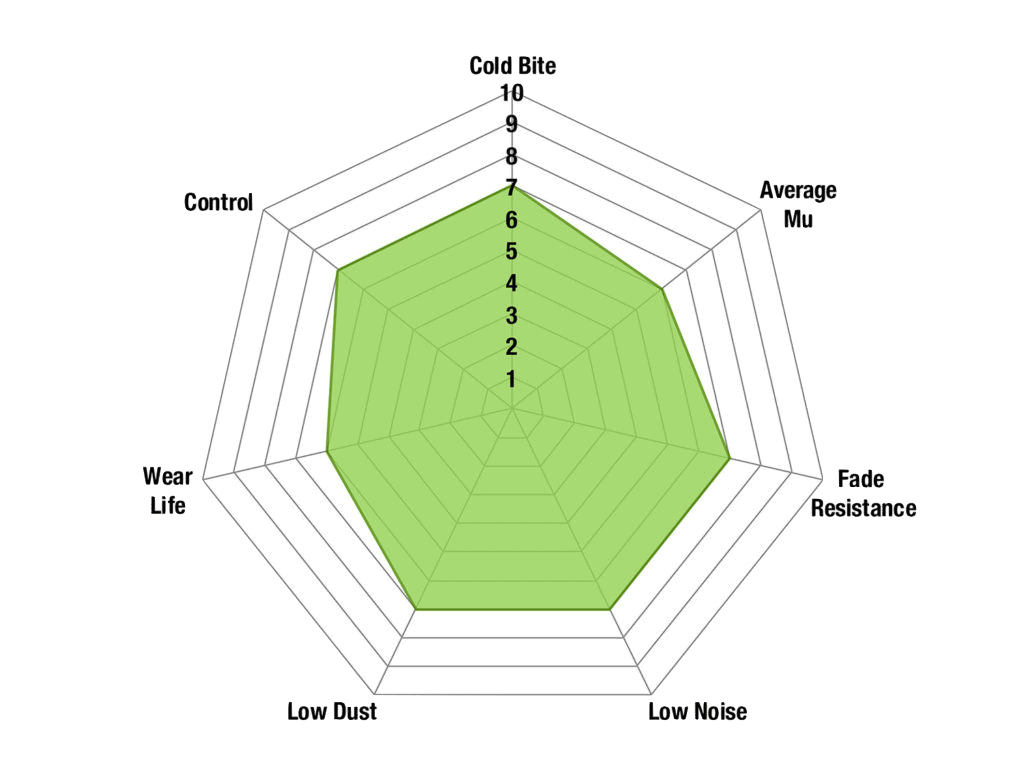 - To complement the pedal feel, the compound allows for extremely low disc wear and better resistance to off-road conditions of dust, sand and so on.