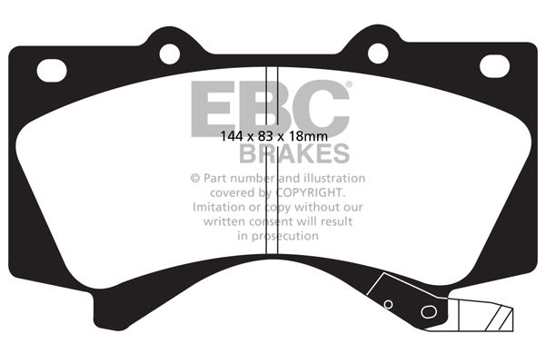 DP61815 – EBC Greenstuff 6000 Brake Pads; Front EBC Greenstuff 6000 pads are regarded as a first level brake improvement over stock providing an improvement in stopping power over OE pads. The “Greenstuff 6000” formula has pushed the barriers of performance of organic made friction materials. These brake pads have a specifically designed softer compound, that has been deliberately created to provide superb brake control and pedal response, for use on SUV’s and light trucks at in highway use. To complement the pedal feel, the compound allows for extremely low disc wear and better resistance to off-road conditions of dust, sand and so on. All EBC Greenstuff brake pads are manufactured in the UK and are fully ECE R90 approved for road legal use in Europe. EBC’s Greenstuff series has had the most success when used for racing and has proved to stop a car almost 20 feet quicker than OEM brake parts. This testing was performed by the UK MIRA Motor Vehicle Research Institute.