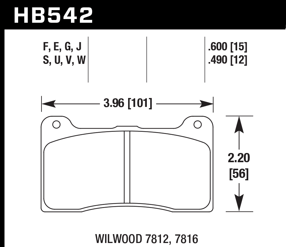 HB542F.600 – Hawk HPS Brake Pads; Hawk High Performance Street (HPS) disc brake pads are legendary for increasing stopping power on street-legal vehicles, and increasing the performance of your vehicle’s braking system is easy when you choose Hawk Performance Street HPS braking compound. The High Performance Street compound offers a higher coefficient of friction over stock brake pads, and can provide you 20-40% more stopping power and higher resistance to brake fade than most standard replacement pads. Less fade means you will have better pedal feel and more consistent performance in a durable brake pad that generates less dust. Operating temperatures: 37-370°C Optimal temperature range: 37-260°C
