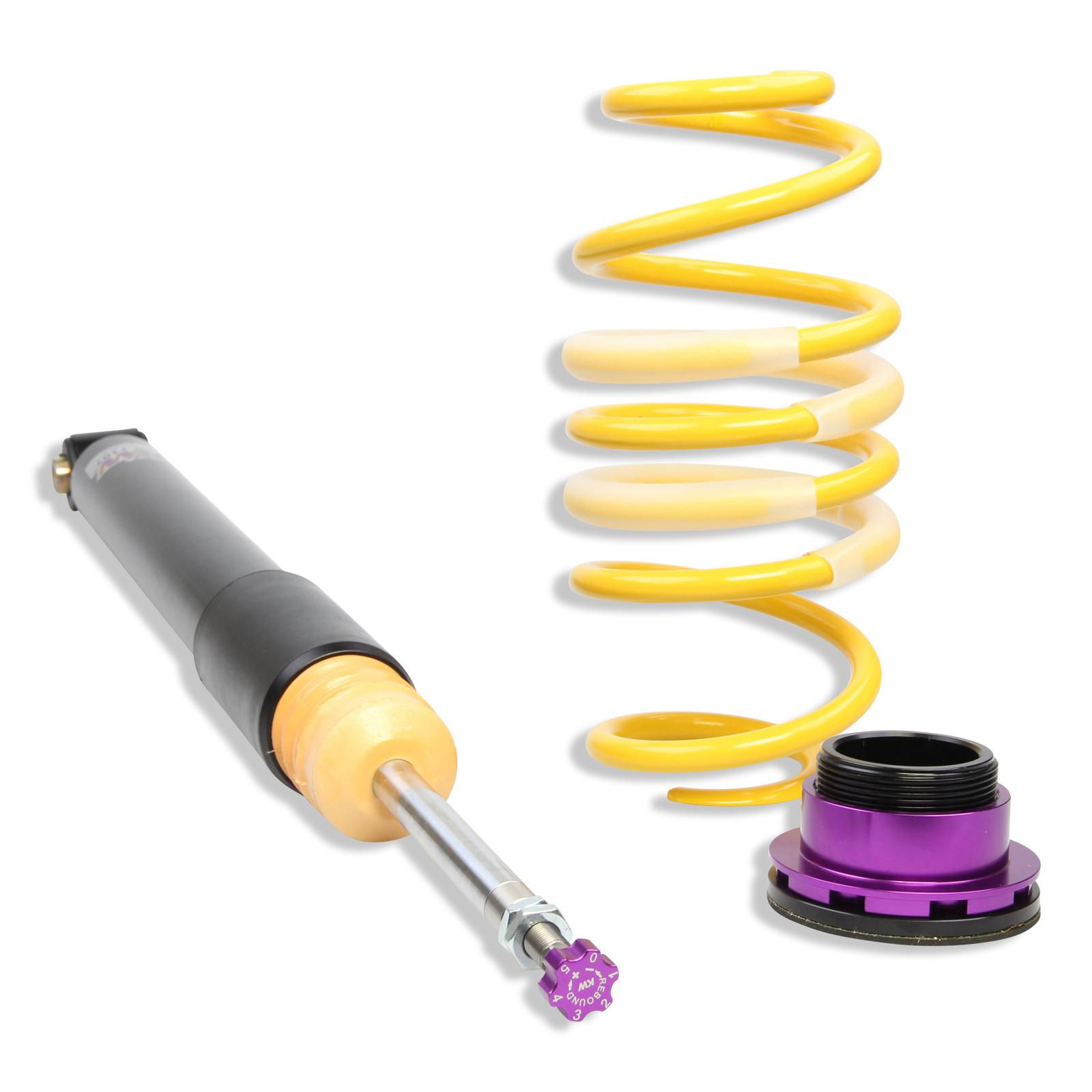 You have 16 clicks of adjustments with a KW V2. The rebound adjustment changes the driving dynamics if the change the complete wheel set or install a set of winter tires. You can adjust the damping characteristics of the weather-resistant KW V2 to be firmer or more comfortable, according to your own needs. The suspension is suitable for all competitive drivers who want more than just continous lowering for their driving pleasure.