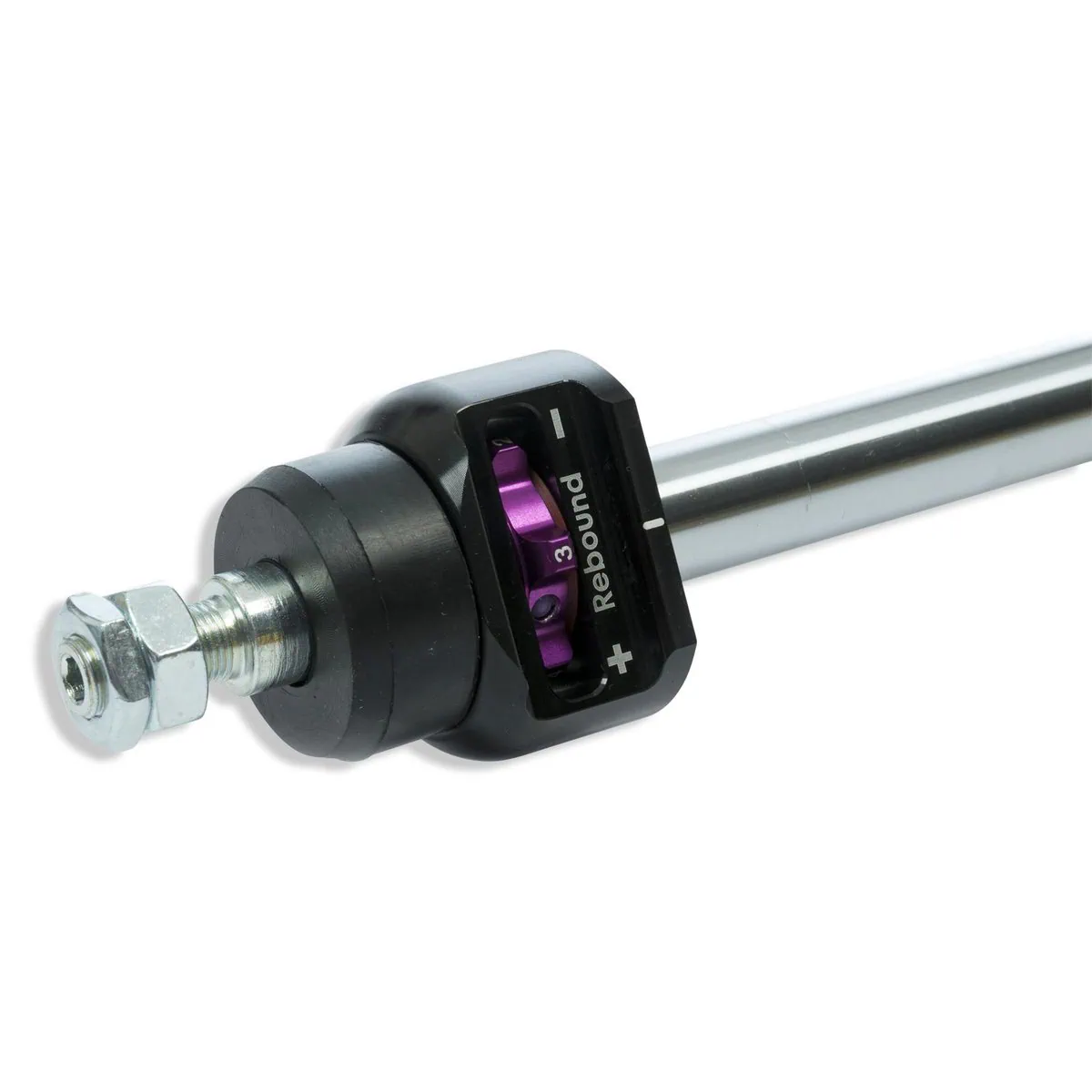 You don’t need any adjusting tools because of the patented compression adjuster at the lower end of the stainless steel housing. The adjustable compression damping with its twelve exact clicks allows you to manually influence body roll, without having to change the spring rate which optimally matches the rebound.