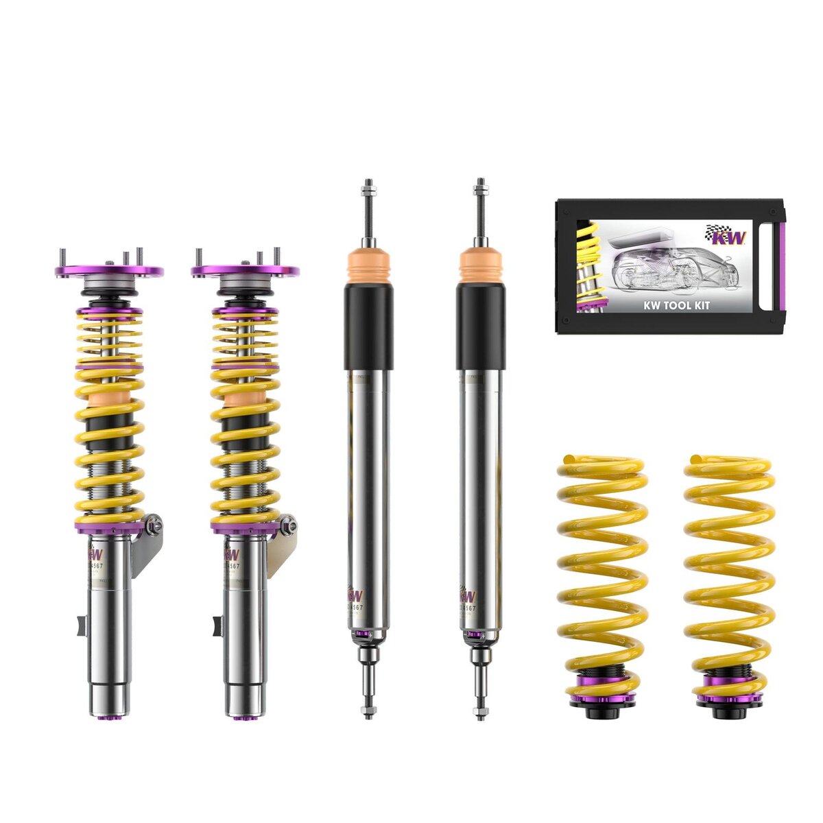 The KW Clubsport coilovers combine KW’s high-end racing technology with maintenance-free KW OEM components and part certificate.