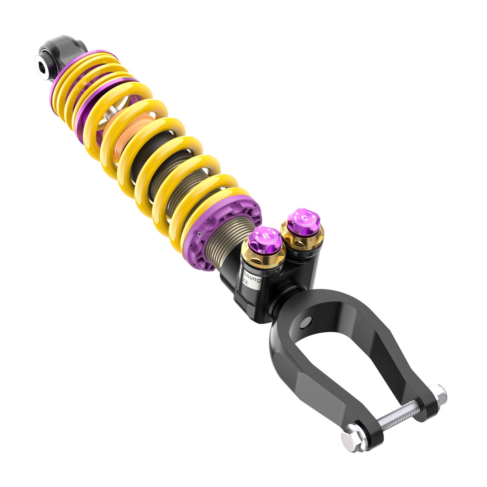 By launching the new KW V5 coilover suspension, KW focuses on its successful motorsport suspension technology with KW Solid Piston Technology and modular design with damper valves connected in series. The KW V5 assures precise and fast damping without delay in sports cars and super sports cars. The shock absorbers and valves react directly, even with small spring travel, minimal steering movements, and minor road undulations. Every driving maneuver and every input, such as those generated during braking, acceleration, steering, load changes, and undulations, are damped much more precisely. The KW Solid Piston dampers provide much more platform support to the chassis than conventional dampers and thus, depending on the vehicle body allow for lower spring rates to be used.