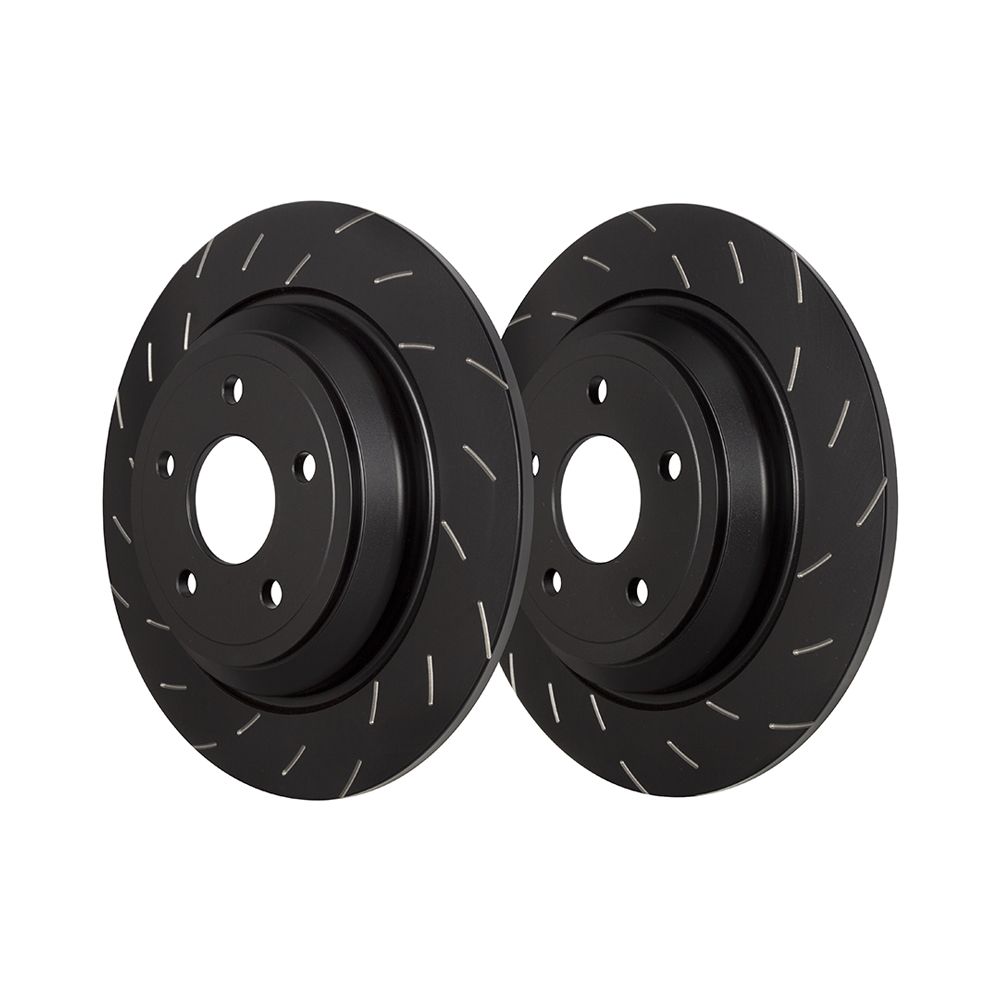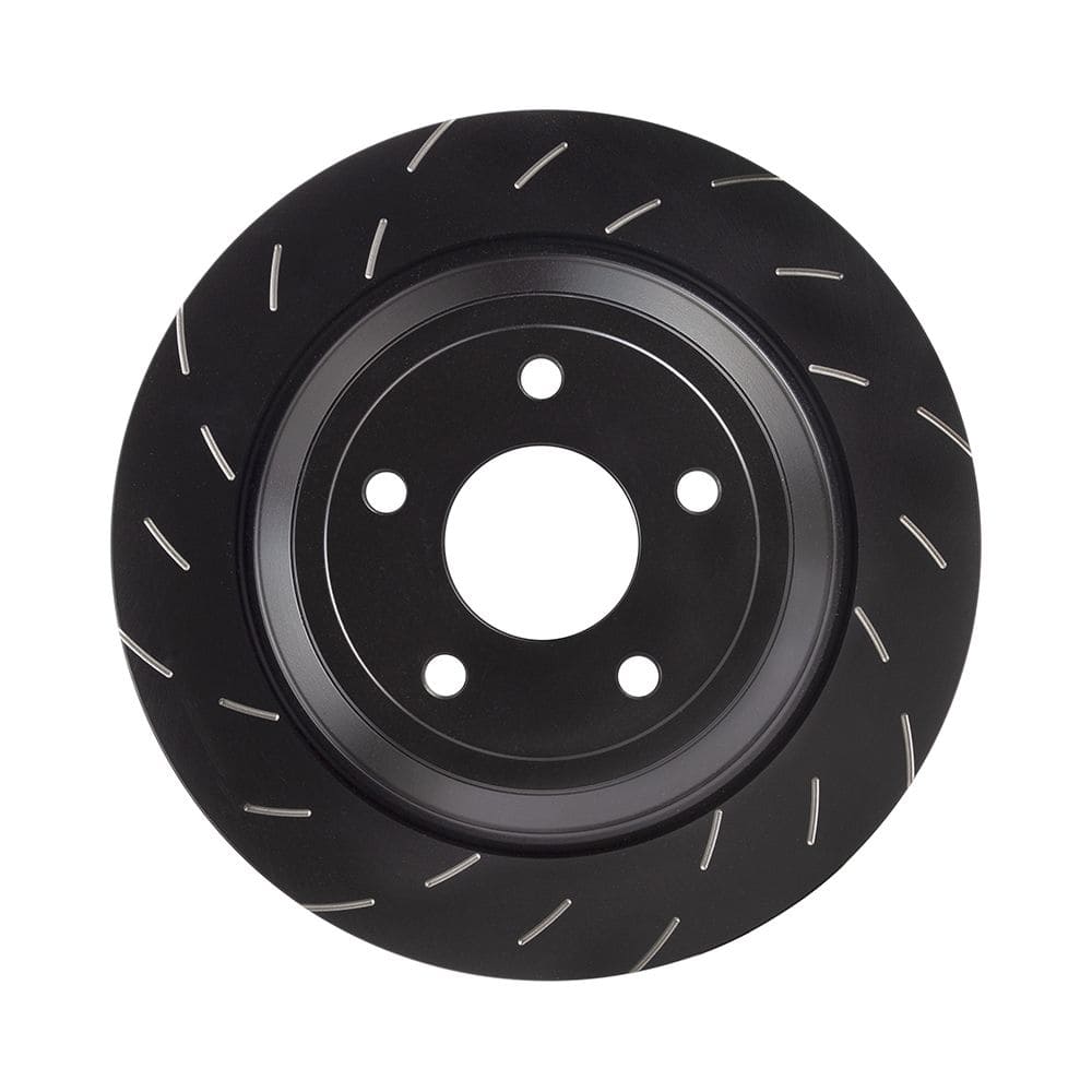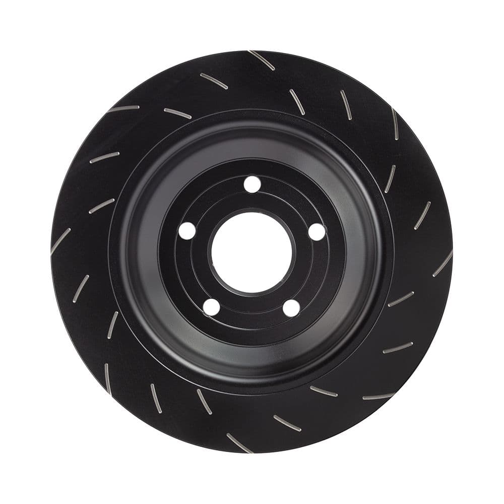 SG2031 – EBC SG Slotted Brake Discs; Rear EBC SG “Swept Groove” brake discs are designed to match 2-piece fully-floating front discs that are included in EBC big brake kits and feature the latest chemically applied corrosion resistant black finish. This black coating has been tested with the industry standard salt spray test and proven to last anywhere between 2 and 5 years depending on conditions and represents the ultimate in disc rust prevention. Features; wide aperture grooves preventing dirt build up and aid cooling, black anti-corrosion coated castings offering EBC’s best corrosion resistance ever, a quiet slot pattern and increased lifetime over standard parts.