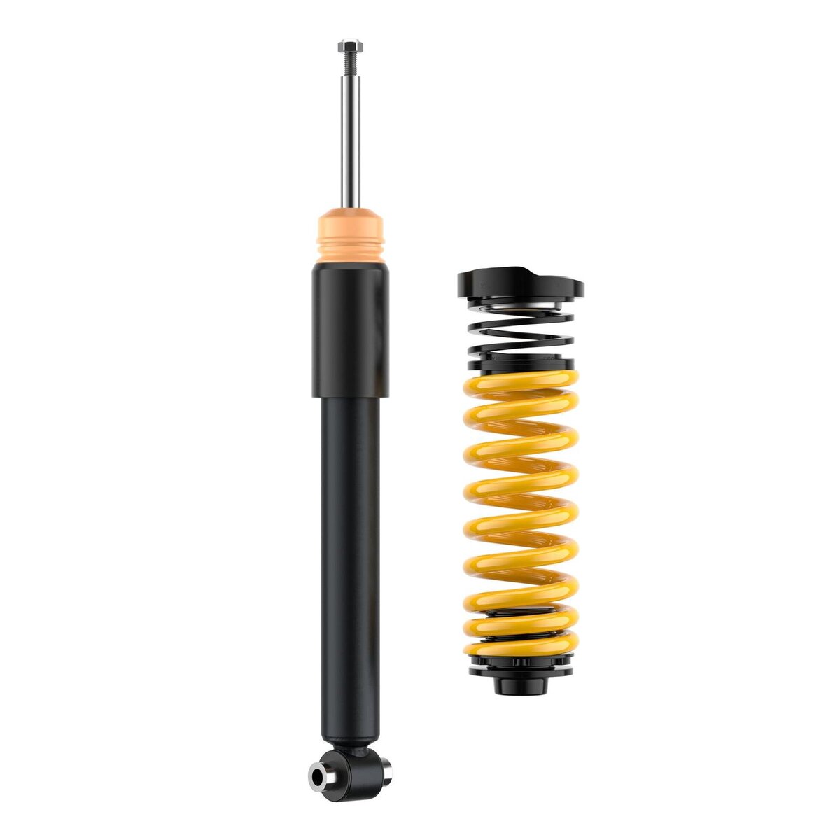 Once installed, the ST X coilover can be easily adjusted using a polyamide ring on the galvanized, multiple-sealed strut. Adjustment is different for each car, but typically you can expect between 35 and 65mm of lowering on both the front and rear axles. For lowered cars as standard (such as the BMW E9x 3-series) the ST X coilover features a range of 30 to 60mm (front axle) and 25-55mm (rear axle).