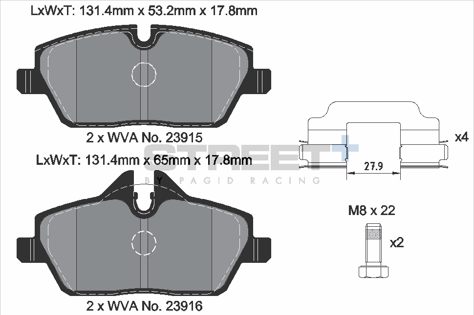 T8050SP2001 – Pagid Street+ Brake Pads; Front